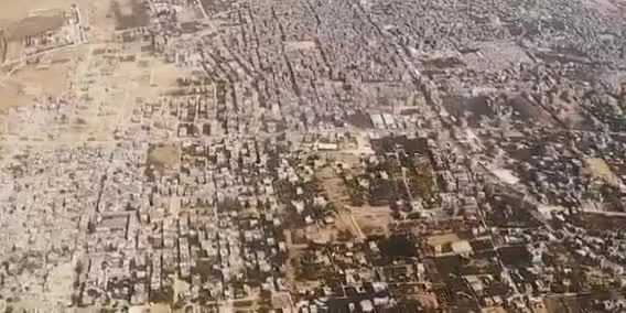 ویدئویی تکان دهنده که شبکه تی.آر.تی آن را منتشر کرد، تخریب کامل مناطق مسکونی در نوار غزه و ویرانه های این منطقه را نشان می دهد؛ چیزی که کارشناسان از آن به عنوان «دومیساید» یا ویرانی عامدانه خانه های مسکونی یاد میکنند.