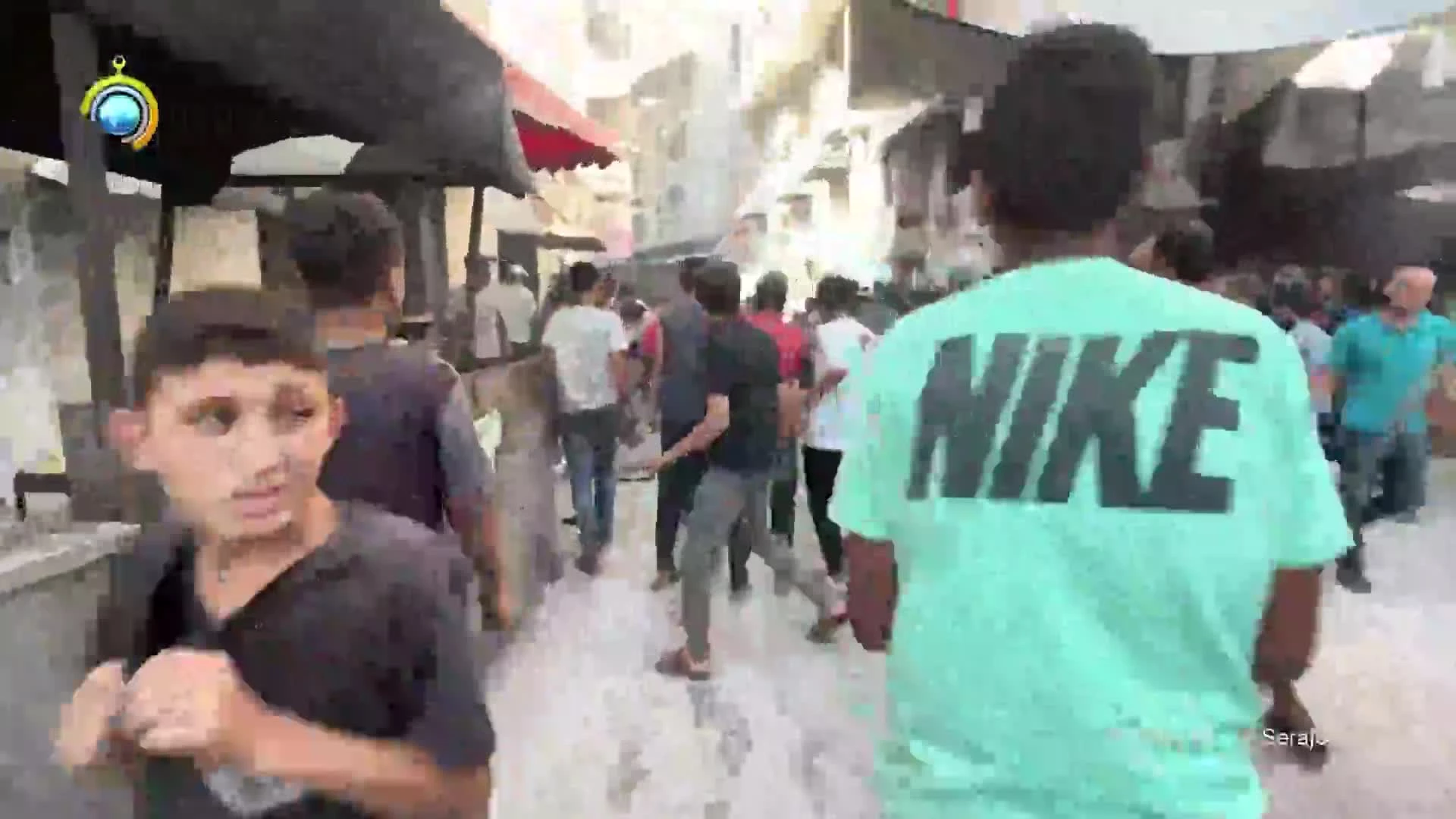 لحظات اولیه پس از بمباران بازار خیابان فهمی بیک در نوار غزه که به زخمی شدن شمار زیادی از فلسطینیان منجر شد