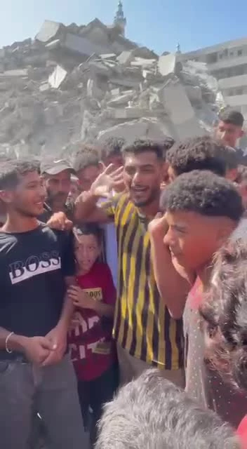 یکی از جوانان فلسطینی که مقابل ویرانههای برج الغفری جمع شده بودند گفت: تا پای جان ایستادهایم و هرگز از شهر غزه خارج نخواهیم شد.